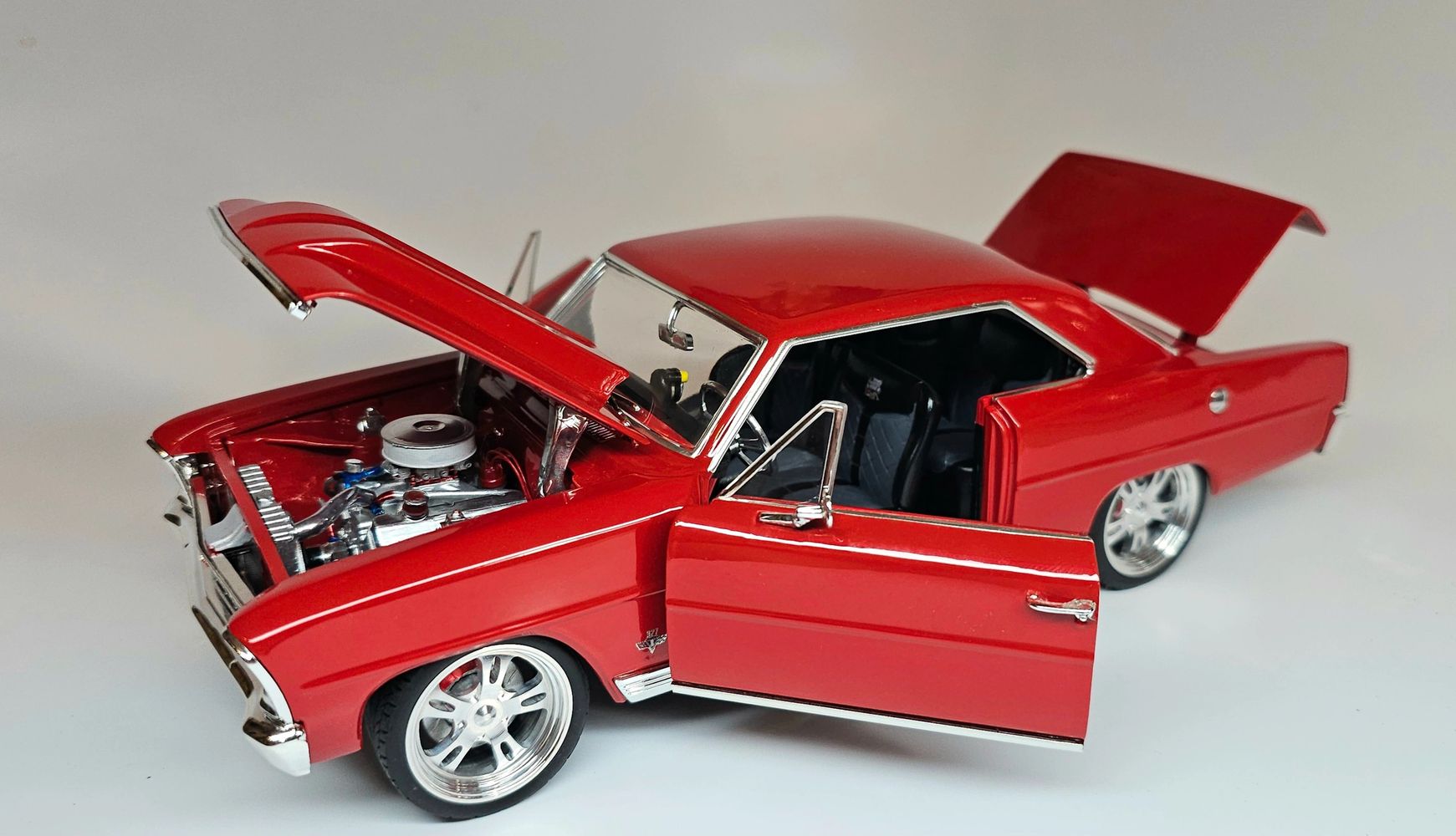 Most of the larger scale 1:24 and 1:18 replicas have opening doors, and hoods. These display so well with your car at a Car Show, on your mantle, or on your desk.